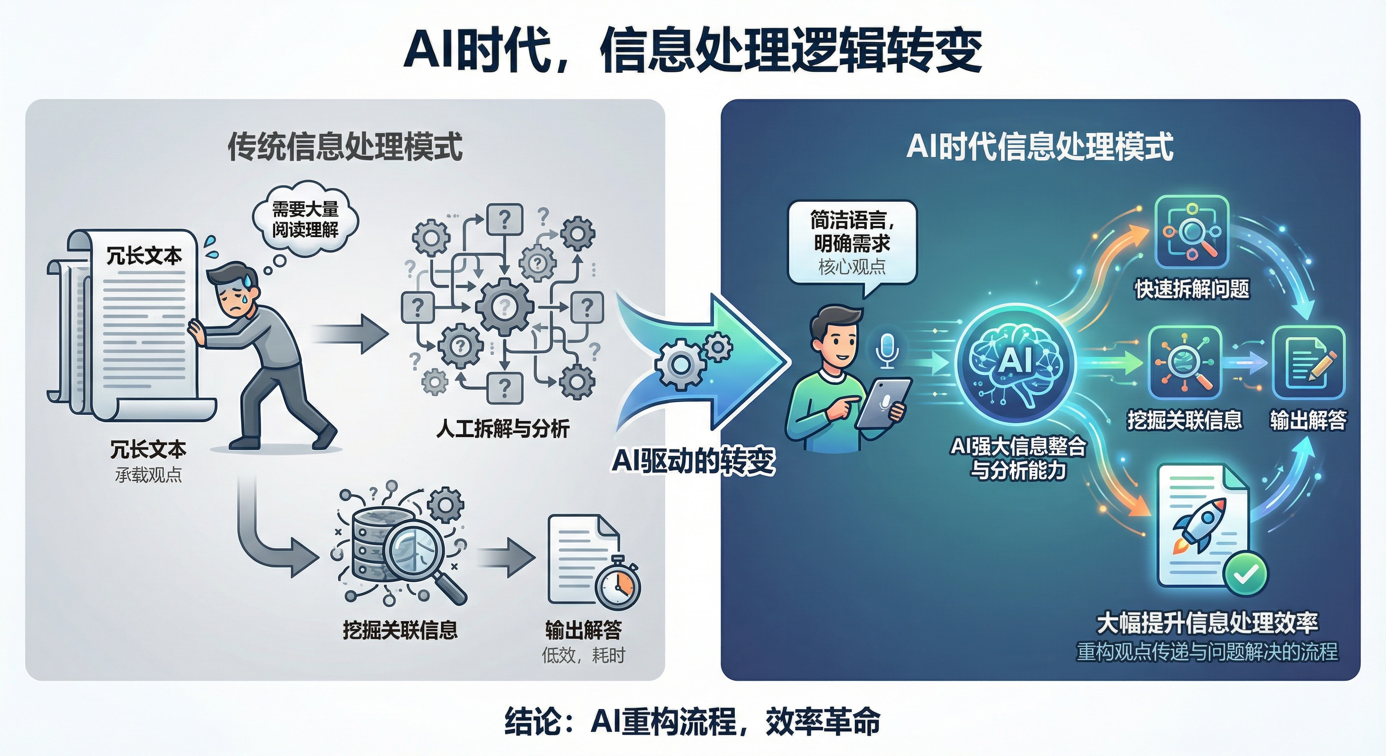 AI时代也许不需要长文 [2026-01-02] | [taa] | [AI感悟] | [18 views] AI时代,信息处理逻辑转变:无需冗长文本承载观点,核心在于人用简洁语言明确需求。AI凭借强大信息整合与分析能力,可基于清晰观点快速拆解问题、挖掘关联信息并输出解答,大幅提升信息处理效率,重构观点传递与问题解决的流程。 [Previous: AI在重塑软件的操作] | [Next: AI优先可能会持续一段时间]