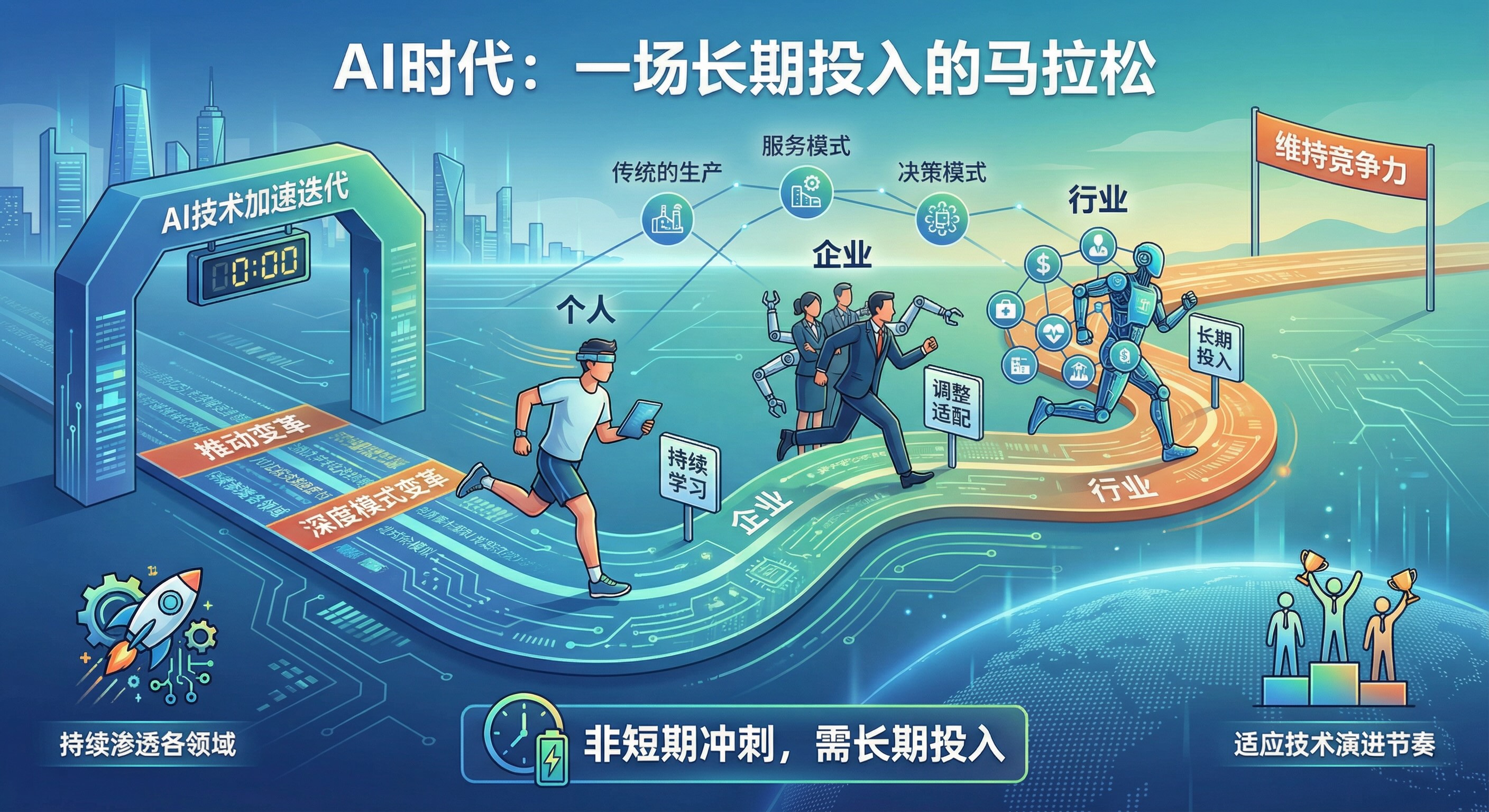 AI优先可能会持续一段时间 [2026-01-03] | [taa] | [AI感悟] | [9 views] AI技术迭代呈加速态势,持续渗透各领域,推动传统生产、服务及决策模式深度变革。此过程中,个人、企业乃至行业均需持续学习、调整适配,而非短期冲刺,如同马拉松般,需长期投入以适应技术演进节奏,维持竞争力。 [Previous: AI时代也许不需要长文] | [Next: 扣子的转变]